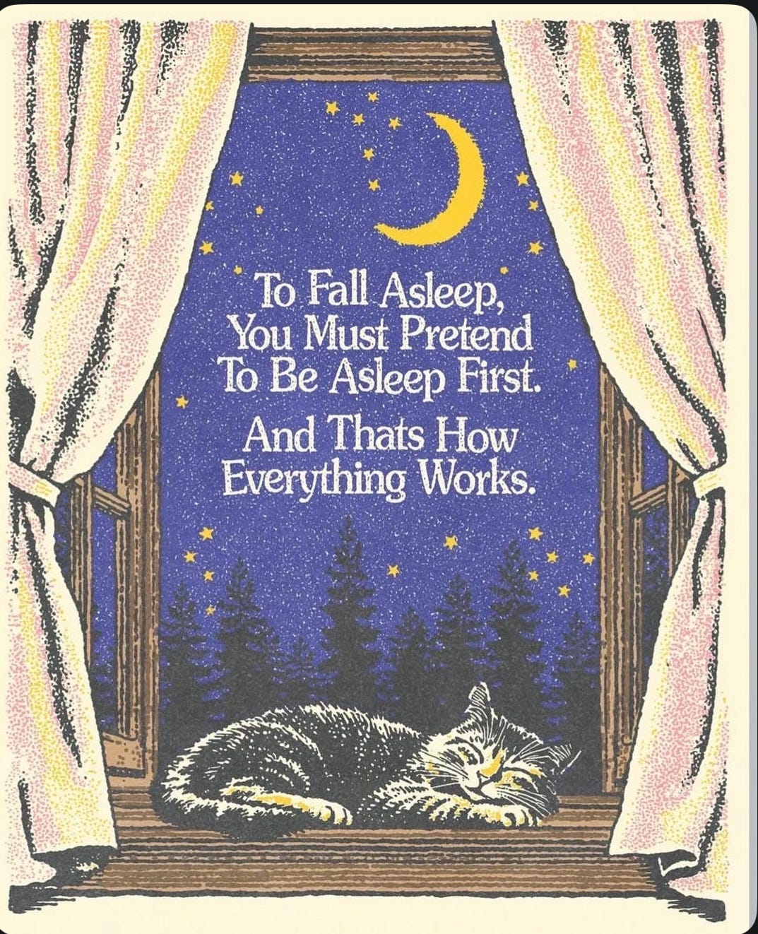 “To fall asleep, you must pretend to be asleep first, and that’s how everything works.”